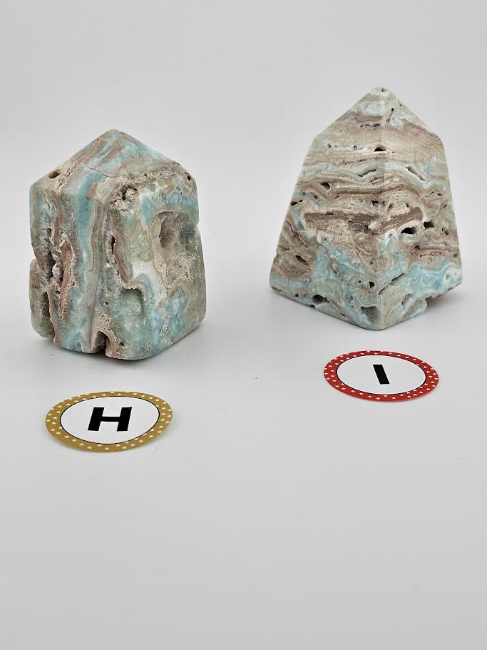 Enhance your crystal collection with our Caribbean Calcite Small Obelisk. This unique obelisk features stunning Caribbean Calcite. Discovered in Pakistan in 2019, it is a combination of blue calcite & brown and white aragonite. This is the only location this combination has ever been found. This makes a perfect gift for any beach lover!