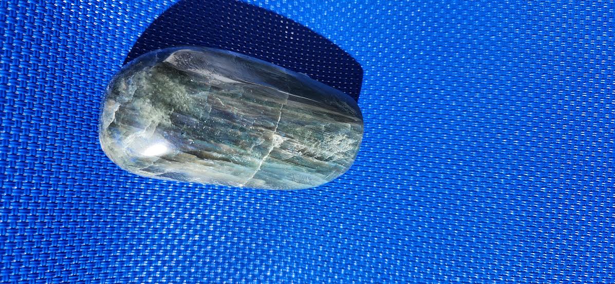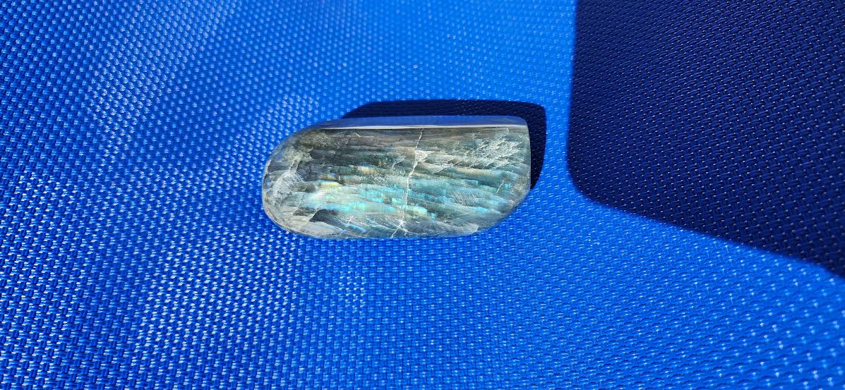 This free-form Labradorite is the most unique labradorite we have ever had. Its unique feature is that it flashes beautiful iridescent blue, gold and even silver nearly 360 degrees around. Pictures cant capture the beauty and it truly needs to be held in your hand to appreciate the colors and flash effect. It can stand upright or laid down. Ideal for collectors, it's the perfect addition to any gemstone collection.