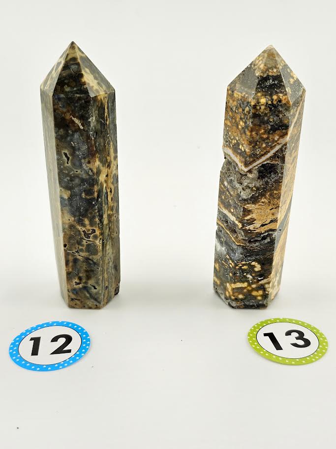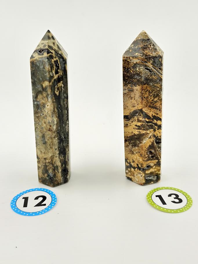 The Ocean Jasper Tower is a beautiful addition to any crystal collection. This unique tower, made from ocean jasper, boasts a stunning pattern of swirling colors.