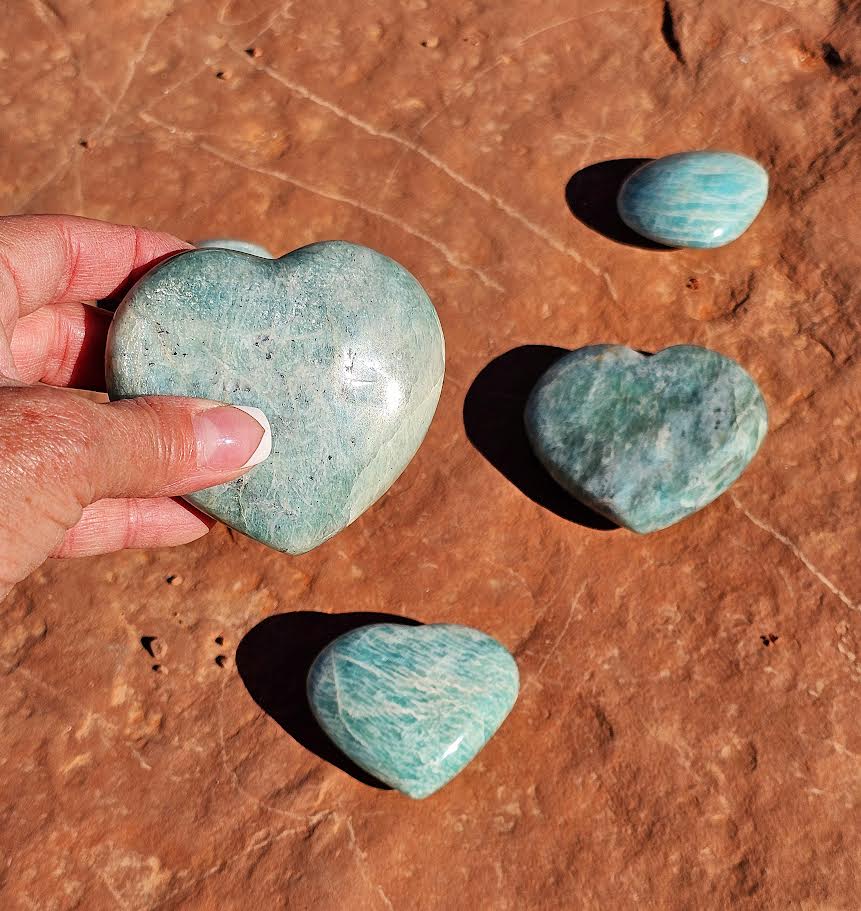 This aqua colored heart is laced with translucent veins. The sense of the ocean pours from this unique Amazonite Heart.