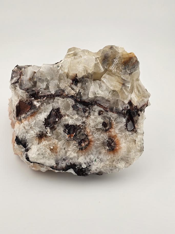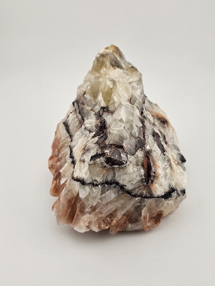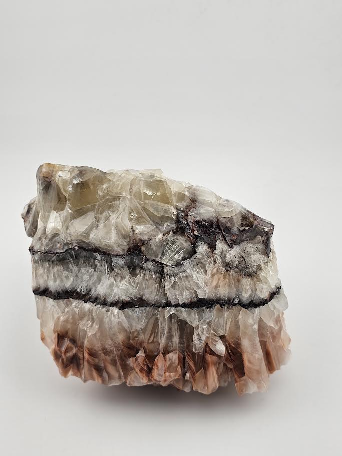 Discover the natural beauty of our amazing Banded Calcite Crystals. These large, heavy crystals have a slippery, gloss finish that seems to be man made, but are completely natural. The colors vary from salmon to white with a distinct black band. This makes a perfect addition to your desk or a stunning, unique gift.