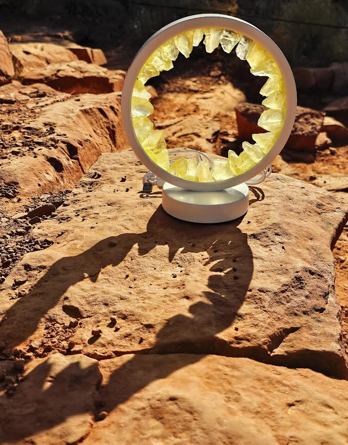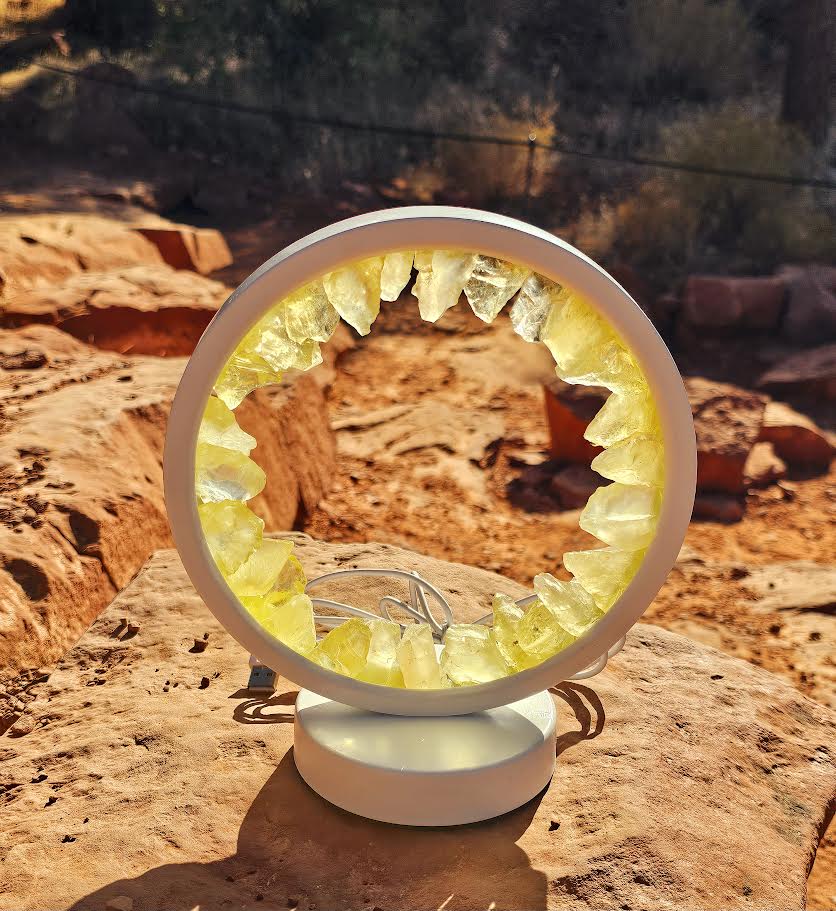 Our USB Citrine Lamp is a modern version of a soothing citrine night light. The light features citrine crystals lit by USB power for easy use anywhere. Three colors of light and dimming capability allows you to customize the ambiance.